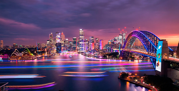 Sydney’s most spectacular event is back and bigger than ever! Vivid Sydney is one of the world’s largest festivals of lights, music, ideas and food. During this festival, the harbour becomes the centre stage where iconic landmarks and waterfront precincts are lit up with large-scale projections and immersive installations.